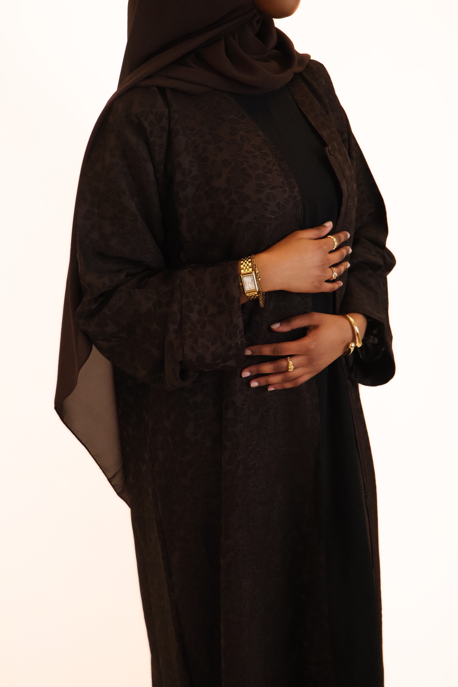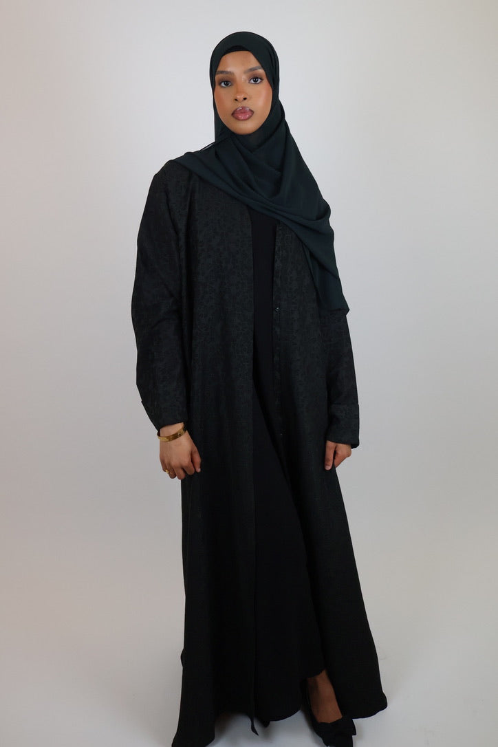 Elmara är en öppen abaya med ett enkelt och stilrent uttryck.
